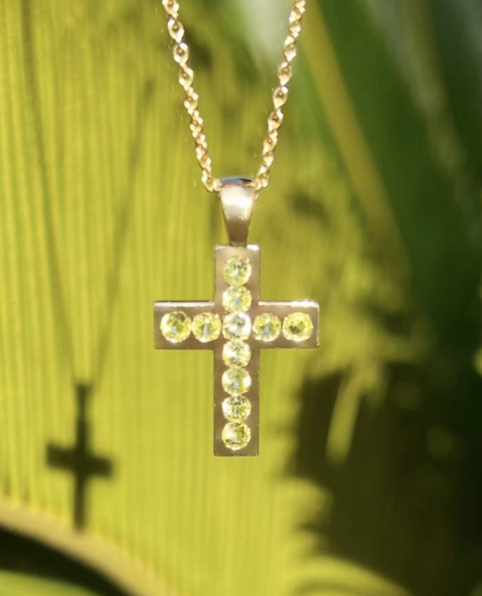 Earrings in precious yellow gold 18k and detachable hand carved drops of natural Peridot gemstone